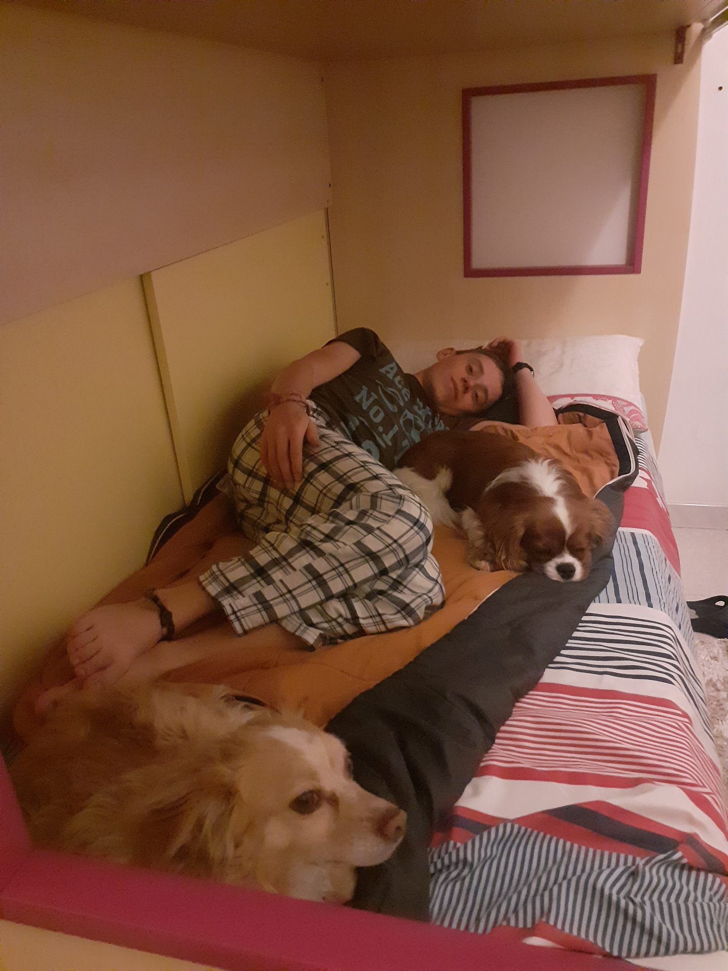 Byl večer, předpověď počasí Yr.no strašila s "orange wind warningem" a nočním větrem dosahujícím až 55km/h a opravdu foukalo tak strašidelně, že jsme kolem půlnoci šli vzbudit kluky, spící ve stanu na střeše, smotali jej dolů a zbytek noci jsme strávili všichni vevnitř, na matračce 190x148cm.